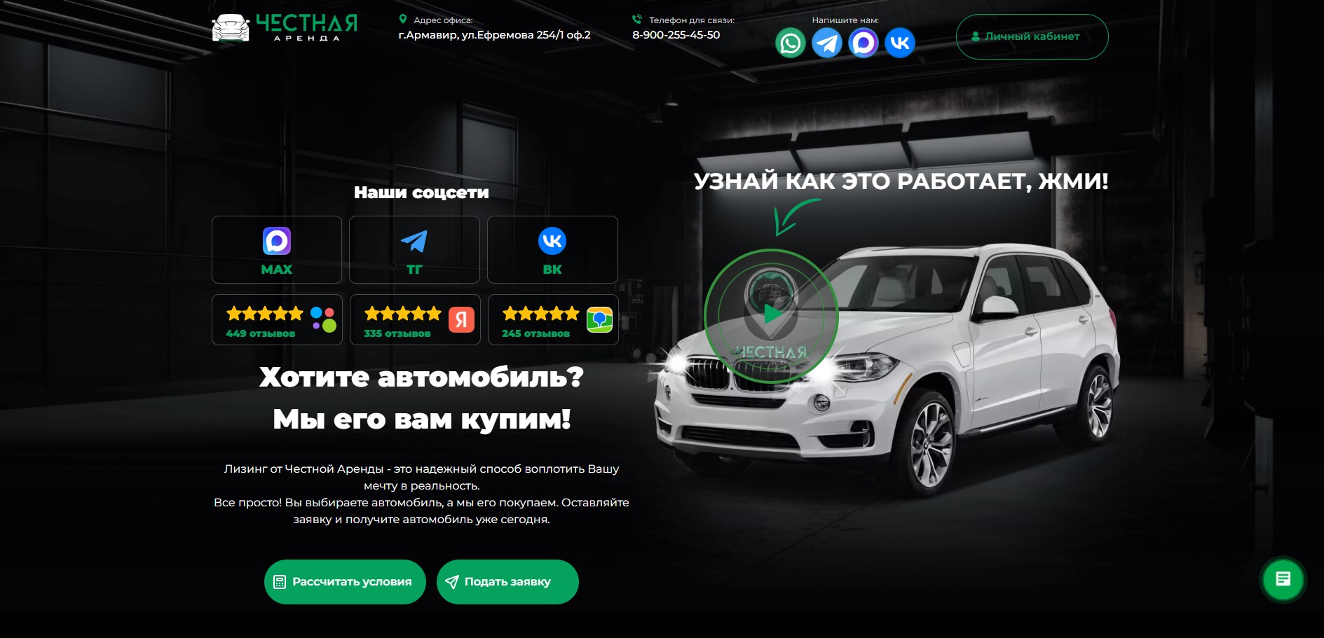 Сайт визитка для компании "Честная аренда"